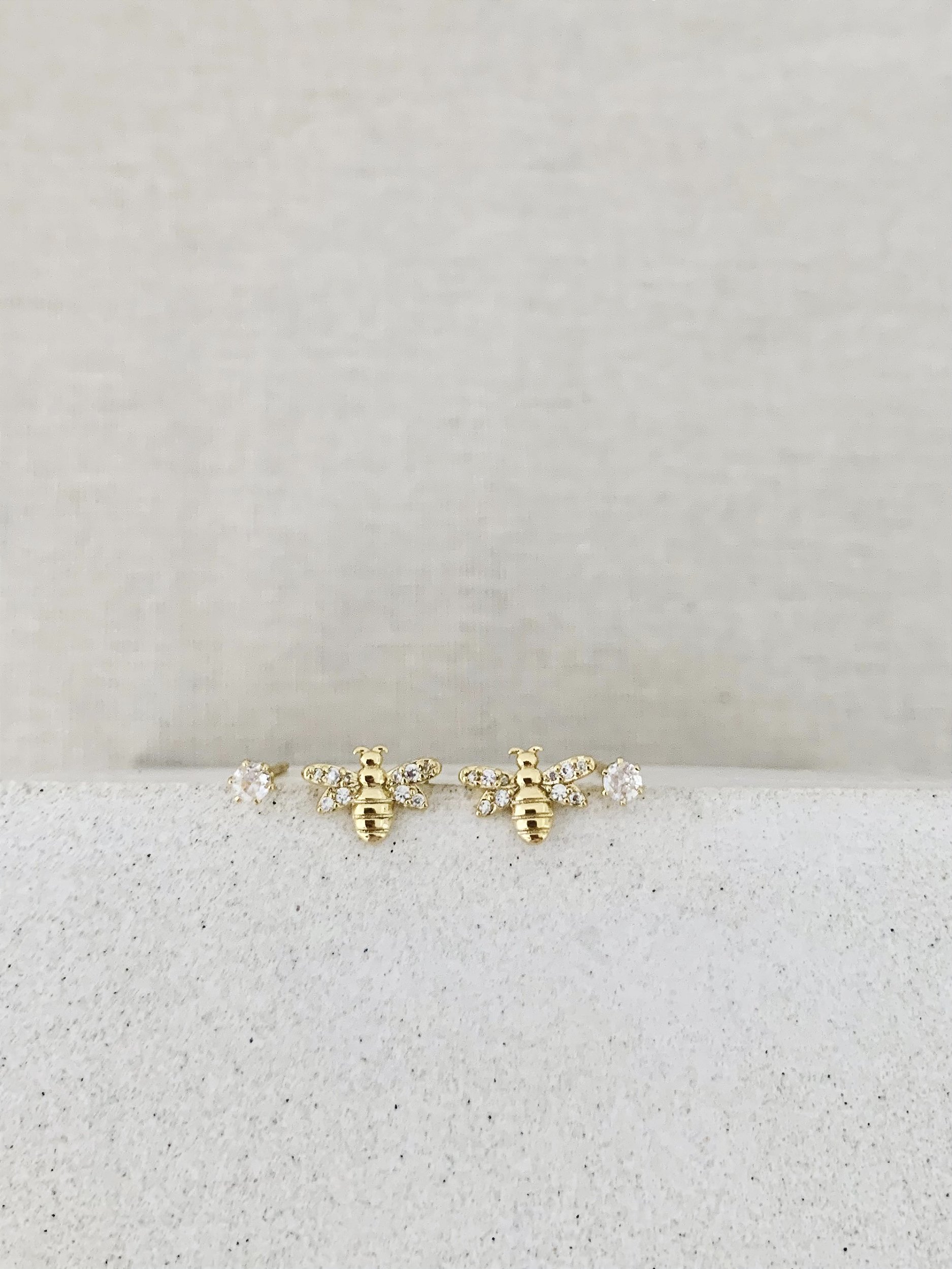 O brinquinho Apis com um ponto de luz pequeno em caixa alta, é a sua nova dupla preferida. Delicados e estilosos, eles deixam a composição harmonica e com um brilho especial. Os fechos são pino e tarraxa.